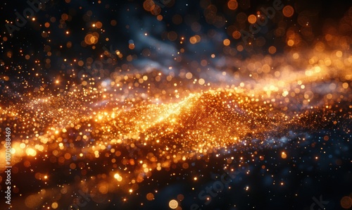 © 炳伟 梁, Fototapeta premium 金色金沙光点辉煌曲线线条散点背景