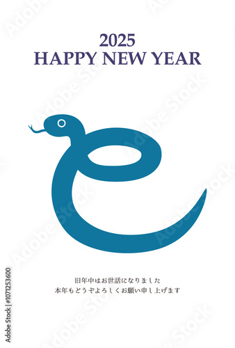 Obraz premium 2025年 巳年 年賀状テンプレート 漢字イラスト 青 縦