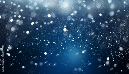 Obraz premium 冬の夜空に雪のように舞い散るシルバーとブルーのスパークル。深い青の背景が一層その輝きを引き立て、幻想的な美しさを感じさせるテクスチャ。