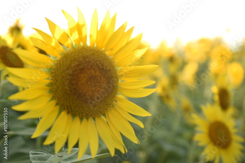 Fototapeta premium ひまわり、日本の夕焼け、佐渡ヶ島