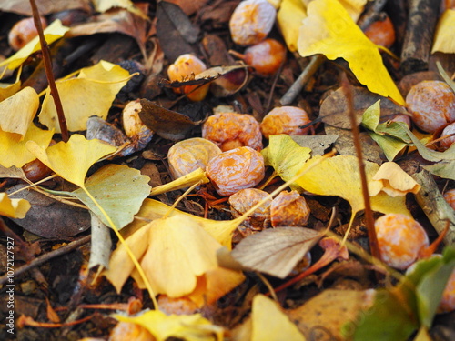 Fototapeta premium 地面に落ちた銀杏