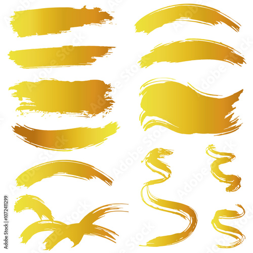 Obraz premium 和風素材 筆で描かれた金色の線のイラストセット ベクター