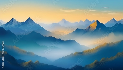 © 문용 최, Fototapeta premium 안개가 끼인 산봉우리 동양화