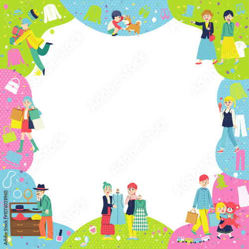 © hasegawa risa, Obraz premium ショッピングする人々 フラットデザイン 正方形