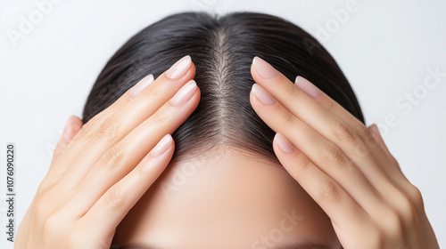 Fototapeta premium "若いアジア人女性の頭皮のクローズアップ."
