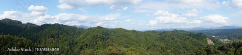 Obraz premium 法性(ほうしょう)寺/「お船岩(舟型の岩山)」の上から見るパノラマの景色【ジオパーク秩父】日本埼玉県秩父郡小鹿野町