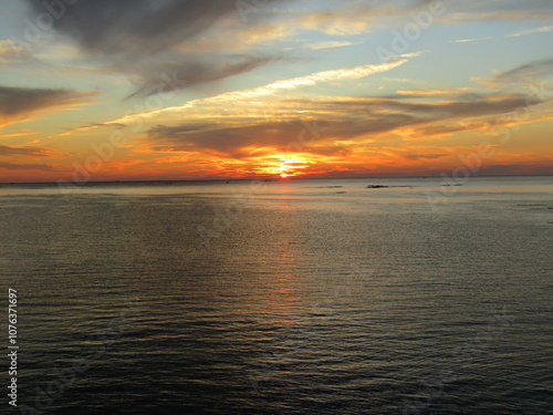 Obraz premium 熊本県天草市牛深、日本の夕陽百選に選ばれた魚貫・黒石の美しく、幻想的な東シナ海の夕陽