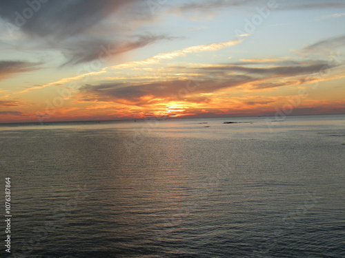 Obraz premium 熊本県天草市牛深、日本の夕陽百選に選ばれた魚貫・黒石の美しく、幻想的な東シナ海の夕陽
