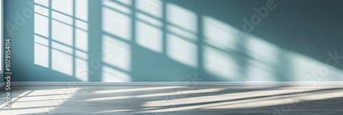 Obraz premium 青い壁の部屋に影を落とす窓の光が美しい午後の風景