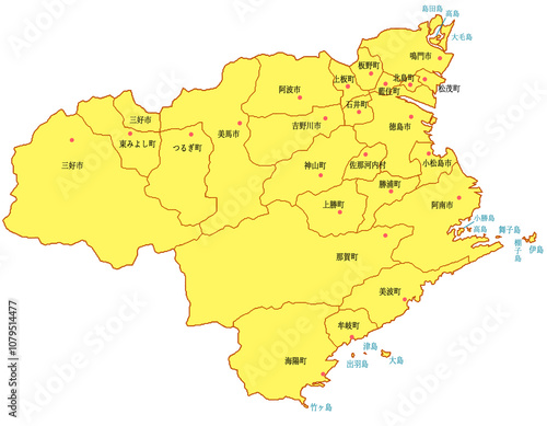Obraz premium 徳島県 地図 黄色 イラスト