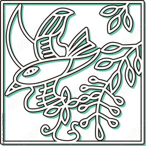 © nissat, Naklejka premium カラーシャドウ正方形シンプル花札 卯月 藤 不如帰 4月 藤に不如帰