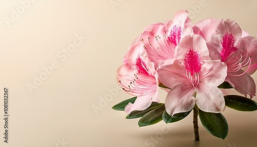 © Shousei, Fototapeta premium 隅にピンクのシャクナゲが配置されたアイボリーの背景。シンプルながらもエレガントで静かな美しさが魅力のデザインです。