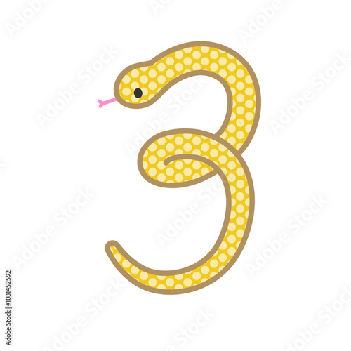 Naklejka premium 数字の3になるコミカルでかわいい金色の蛇