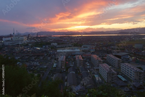 Obraz premium 亀島山から見える夕暮れ 玉島方面