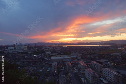Obraz premium 亀島山から見える夕暮れ 玉島方面