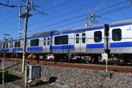 © FRANK, Obraz premium 走行中の電車/茨城県の常磐線で、走行中の電車を撮影した、通勤通学イメージの写真です。