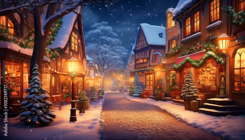 Naklejka premium 따뜻한 조명이 비치는 겨울 도시의 거리