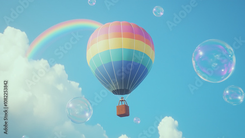 Fototapeta premium 空を飛ぶカラフルな気球と虹