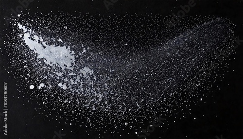 Obraz premium 黒い背景に広がるシルバーの飛沫 黒 背景 シルバー 飛沫 インク ダイナミック 粒子 デザイン アート スプラッシュ 抽象 美術 テクスチャ 光沢 高級感 表現力 創造性 革新性 モダン 洗練