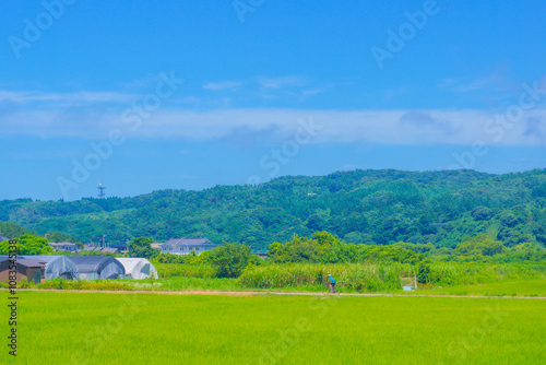 © kanzilyou, Obraz premium サイクリストと田園風景