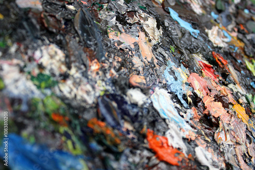 © Painter's texture, Obraz premium 油絵の具テクスチャ 暗め カラフル 抽象画
