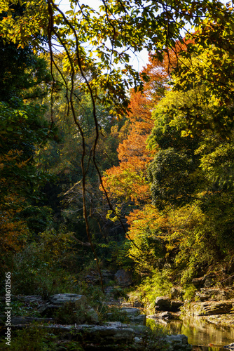 © Gottchin Nao, Obraz premium 秋も深まり色づいてきた渓谷の紅葉