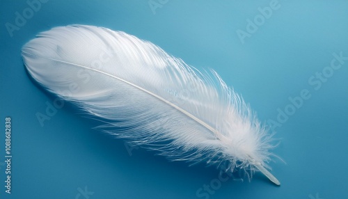 © Shousei, Fototapeta premium シンプルなライトブルー背景に、小さな白い羽が隅に静かに置かれた冬の情景を演出するデザイン。