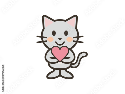© shunpang, Obraz premium 両手でハートマークを抱えるかわいいねこちゃんのイラスト