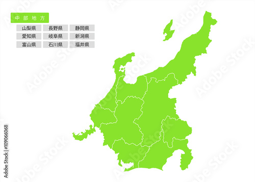 © renoji, Obraz premium イラスト素材「中部地方のエリアマップ」