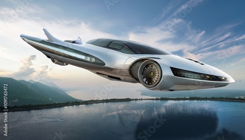 Fototapeta premium 하늘을 나는 미래형 자동차의 외형