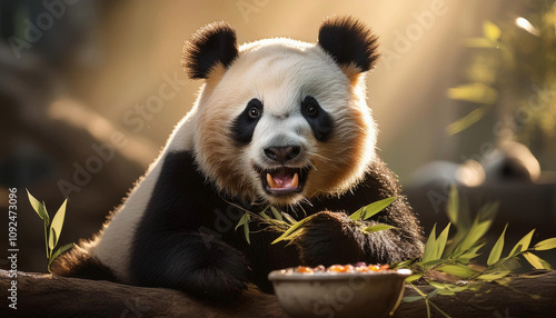 © Reeze, Obraz premium 먹이인 대나무를 먹고 있는 팬더 클로즈업