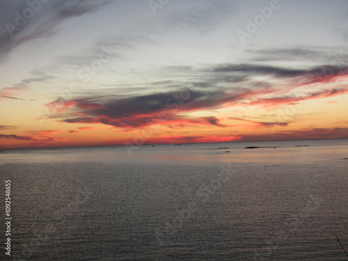 Obraz premium 熊本県天草市牛深、日本の夕陽百選に選ばれた魚貫・黒石の美しく、幻想的な東シナ海の夕陽