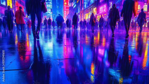 © bephoto, Fototapeta premium 雨の夜に映えるネオンカラーの都会