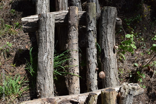 Fototapeta premium キノコの栽培/山形県鶴岡市の森林で、キノコ(シイタケ)の栽培風景を撮影した写真です。
