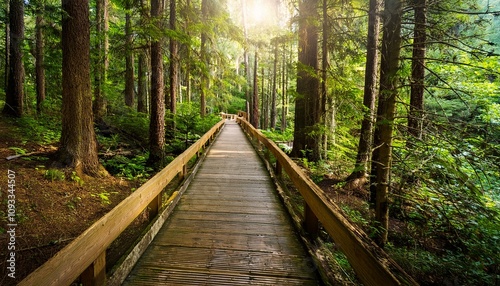 © 순단 강, Fototapeta premium 푸른 숲속을 따라 이어진 나무데크 산책로