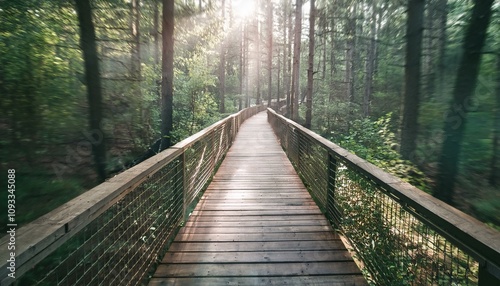 Fototapeta premium 푸른 숲속을 따라 이어진 나무데크 산책로