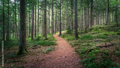 Fototapeta premium 푸른 숲속을 따라 이어진 산책, 트레일 코스