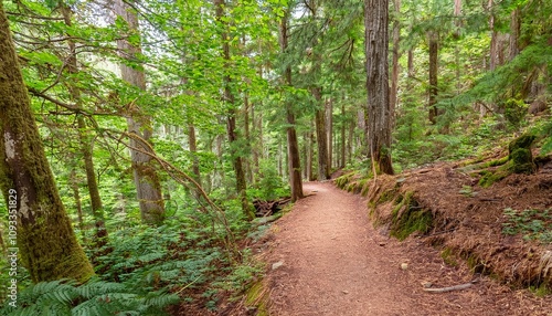 Fototapeta premium 푸른 숲속을 따라 이어진 산책, 트레일 코스