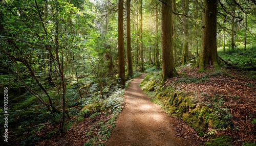 © 순단 강, Fototapeta premium 푸른 숲속을 따라 이어진 산책, 트레일 코스