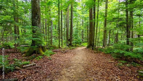 © 순단 강, Fototapeta premium 푸른 숲속을 따라 이어진 산책, 트레일 코스