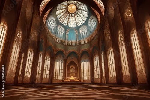 Fototapeta premium ゲーム背景 ステンドグラスの窓があるドーム教会ホール
