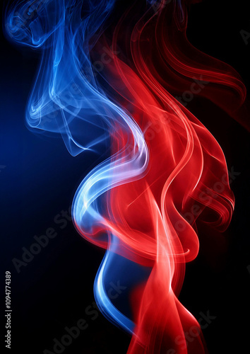 Obraz premium 青と赤の炎 煙 黒背景