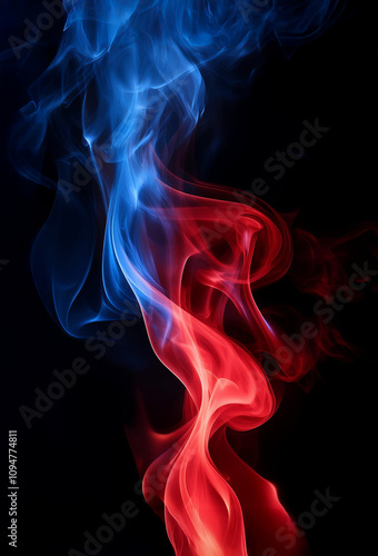 Obraz premium 青と赤の炎 煙 黒背景