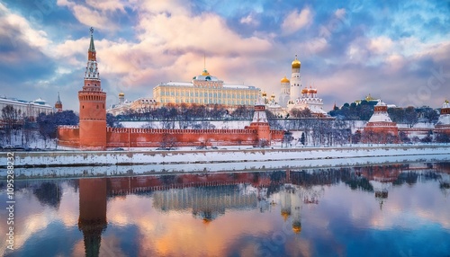 © 순단 강, Obraz premium 눈 덮인 모스크바의 크렘린 성벽