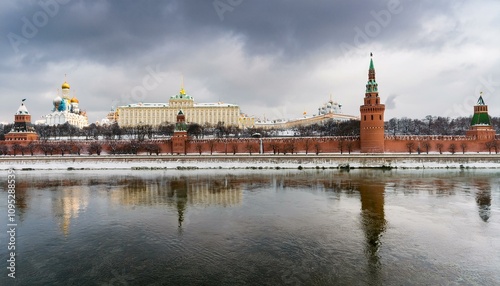 Obraz premium 눈 덮인 모스크바의 크렘린 성벽