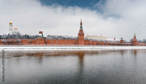 Fototapeta premium 눈 덮인 모스크바의 크렘린 성벽