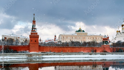 Fototapeta premium 눈 덮인 모스크바의 크렘린 성벽