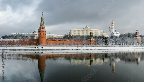 Obraz premium 눈 덮인 모스크바의 크렘린 성벽