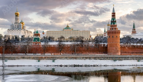 © 순단 강, Fototapeta premium 눈 덮인 모스크바의 크렘린 성벽