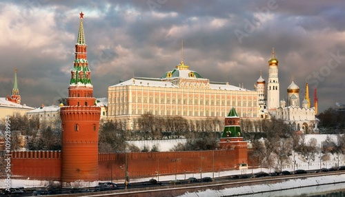 © 순단 강, Obraz premium 눈 덮인 모스크바의 크렘린 성벽